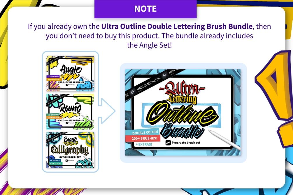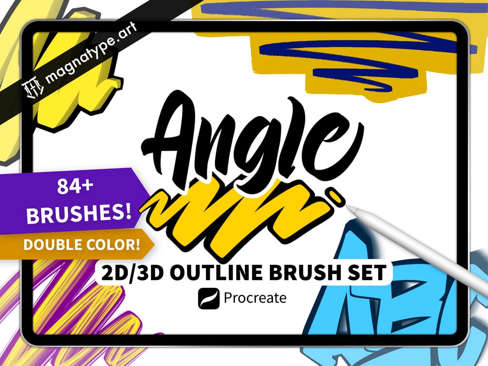2D/3D ANGLE Outline Double Color Brush pack for Procreate | 84+ BRUSHES