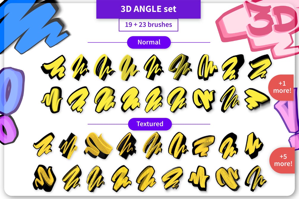 - 19 brushes of the 3D ANGLE set