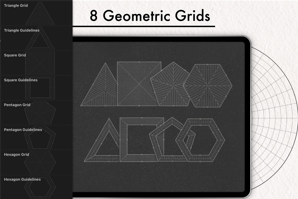 With the BUILDER set, you'll be able to create your own custom guideline grids as needed! The original brushes will give your work a distinctive and unique character.