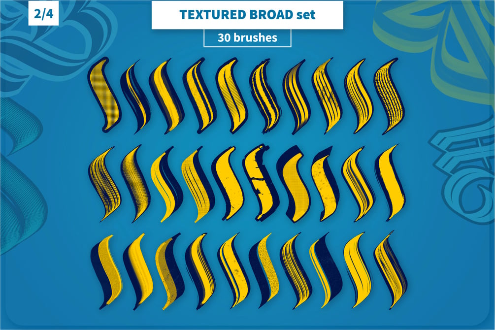 the bundle is an extended set of Calligraphy Outline Double brushes for Procreate and includes 30 brushes from that set