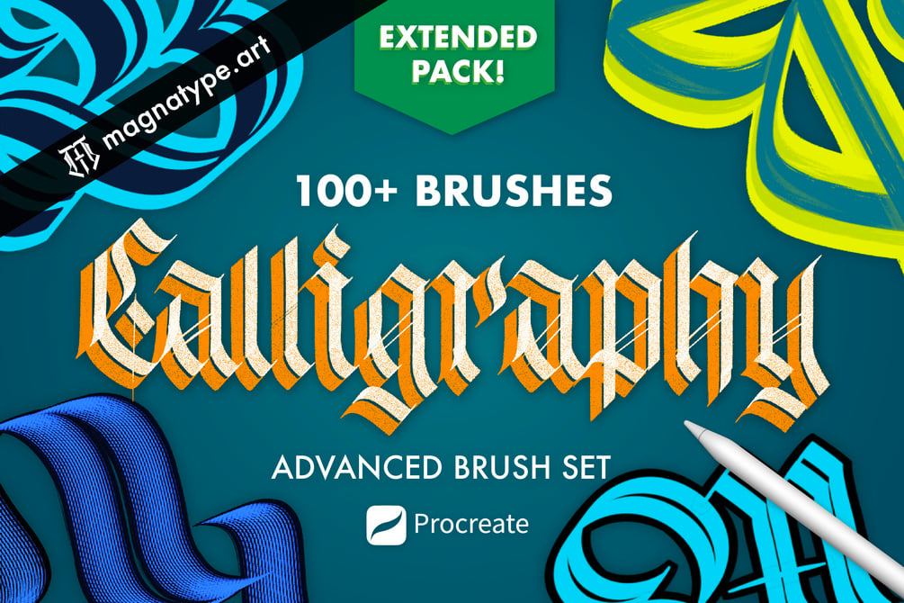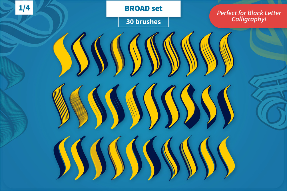 This BIG Extended Brush bundle includes 3 calligraphy sets with 102 advanced brushes for any Black letter/Gothic lovers!