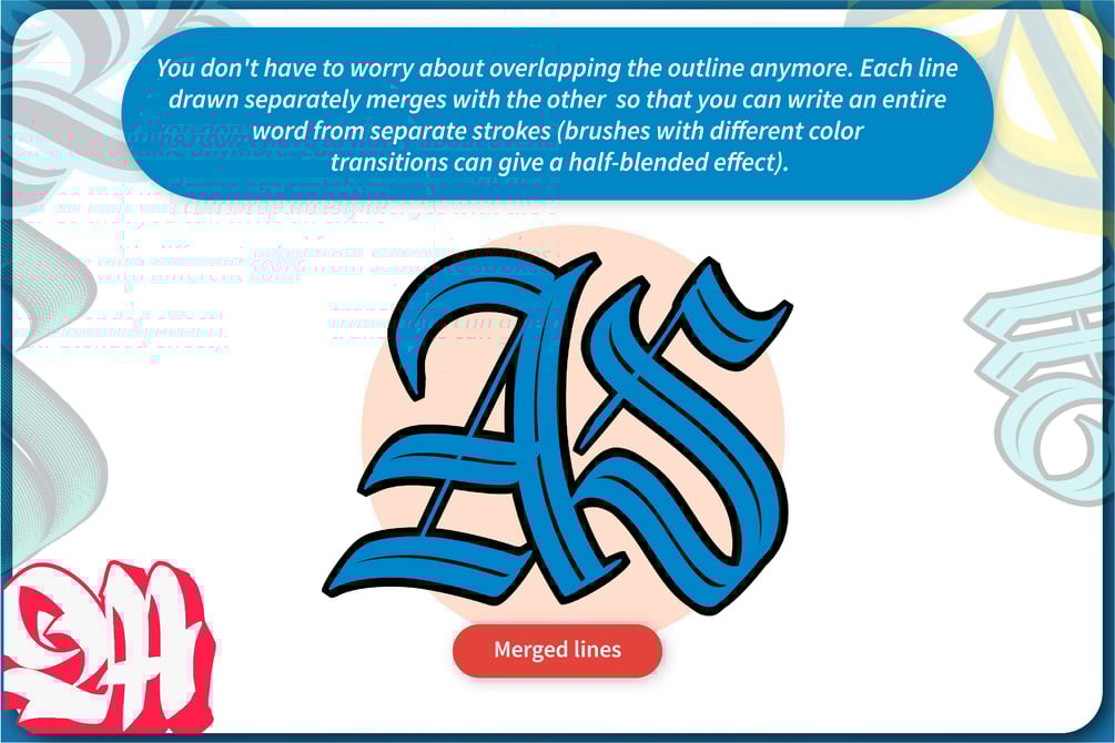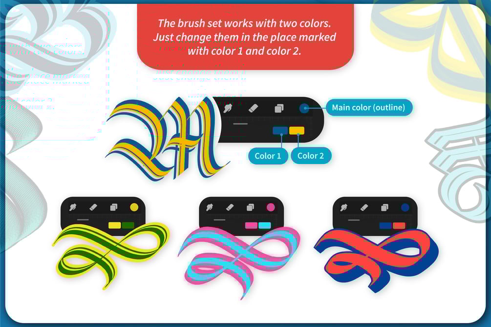 Play and combine different colors using Double Outline brushes (60 brushes!) and level up your projects! Brushes offer amazing possibilities of blending/merging lines. some brushes have a static 45-degree angle and others adjust the angle to your Apple Pencil position. The wide tips of the brushes are perfect for gothic/ black letter calligraphy.