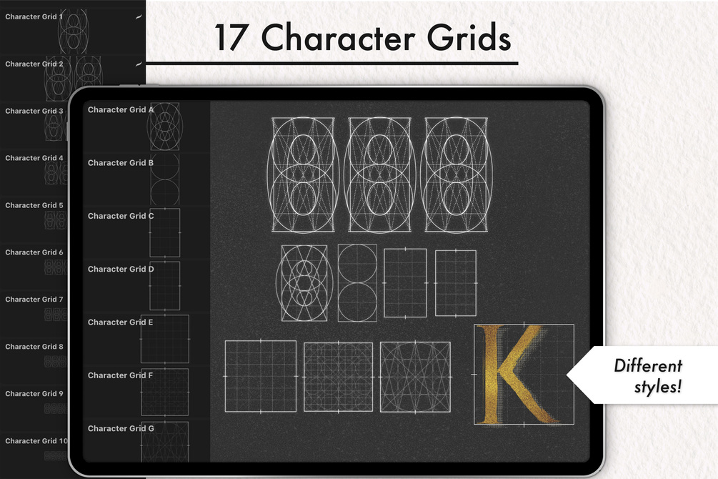Hi! In this offer you can get 159 LETTERING GRIDS for Procreate!
